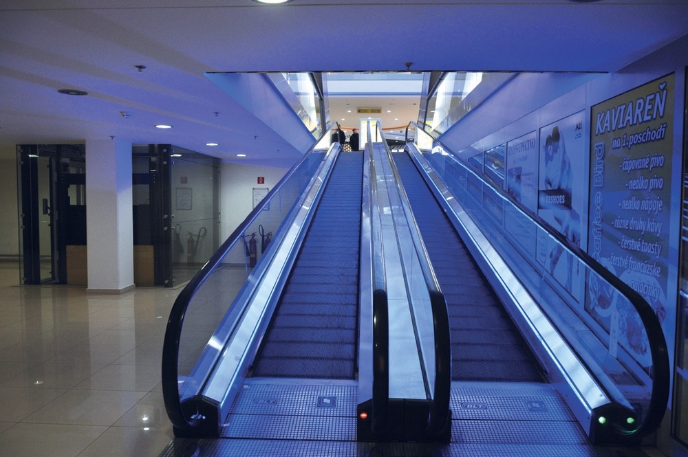 bezpečnostný systém schodov (pri akomkoľvek poškodení schodíka sa eskalátor zastaví),